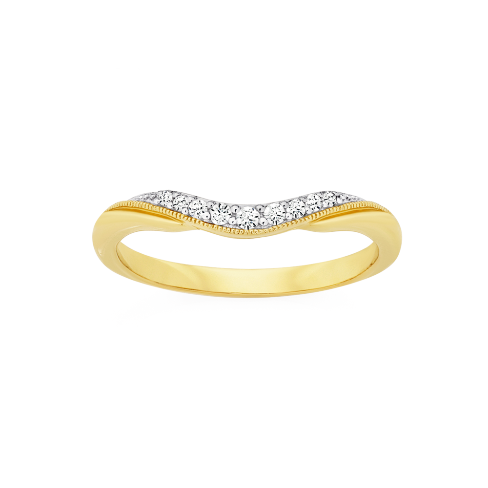 9ct Gold Diamond Round Brilliant Cut Pave Set Curved Band.8577075