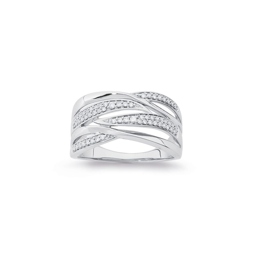 9ct White Gold Diamond Multi Crossover Ring