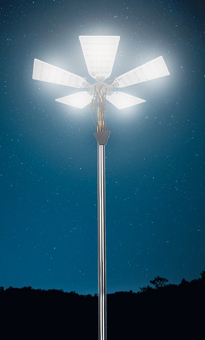 3.8m telescopic stainless steel pole. Illuminates an area up to 50m. Dimmable dual colour output with white and amber LEDs. IP67 waterproof rating.