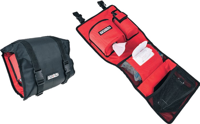 Contains a toilet paper dispenser, empty pump bottle, a wet wipes pocket and a folding shovel. Accessories not included. Order today.