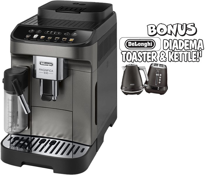 Buy any De’Longhi Coffee Machine $800 and over and Get a BONUS De’Longhi Diadema Toaster & Kettle!¹ 452527 & 452526