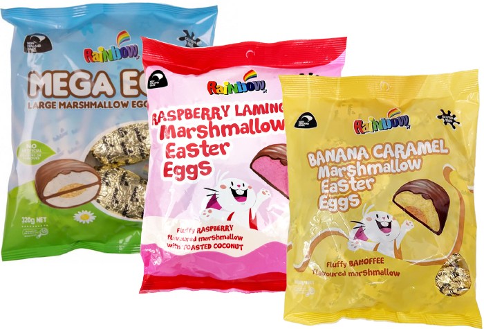 Raspberry Lamington, Banana Caramel, Mega Eggs.