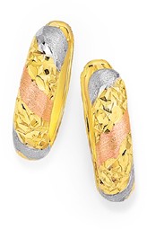 European Made 9ct Tri Tone Gold Diamond-cut Striped Huggie Earrings - Approximate Dimensions 3mm Width x 9mm Inner Diameter.
