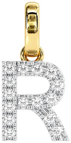9ct Gold Diamond Initial 'R' Block Pendant. Size= Approximately 13mm x 6mm Including Bale.