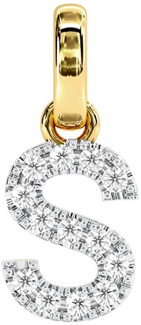 Exquisites Collection: 9ct Gold Diamond Initial 'S' Block Pendant. Size= Approximately 13mm x 6mm Including Bale.