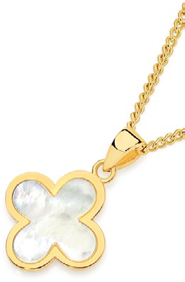 European Made 9ct Gold Mother of Pearl Clover Pendant. Approximate Dimensions - 14mm Width x 20mm Height including bale.