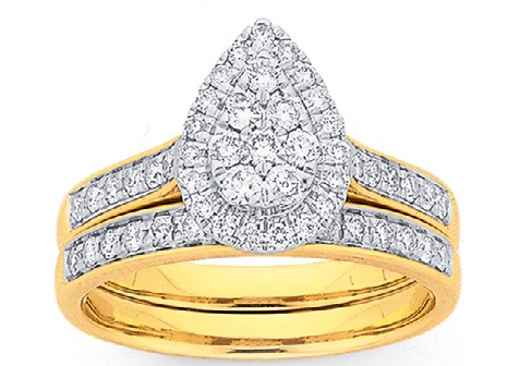 9ct Gold Diamond Round Brilliant Cut Cluster Pear Shape Shoulder Bridal Set Total Diamond Weight =.70ct