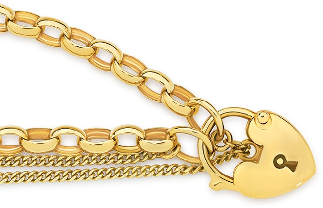 9ct 19cm Solid Oval Belcher Padlock Bracelet