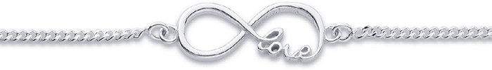 Add a touch of classic style to your outfit with this sterling silver bracelet. Featuring an infinity symbol with the word 'love' written in, it is a lovely choice. This is one of our most popular bracelet styles.