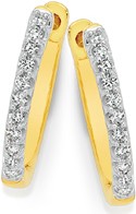 9ct Gold Diamond Small Claw Set Hoop Earrings Total Diamond Weight=.12ct. External size= Approximately 13mm x 2mm