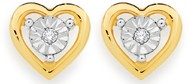 9ct Gold Diamond Miracle Set Open Heart Stud Earrings. Size = Approx. 6mm x 5mm.