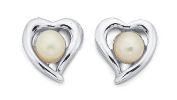 Freshwater Pearl Heart Stud Earrings in Sterling Silver