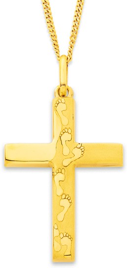9ct 24mm Footprints Cross Pendant with Verse on Back