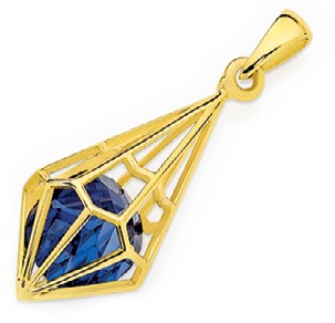9ct Gold Created Sapphire Oval Geo T Drop Pendant7211025