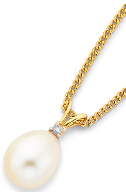 9ct Cultured Freshwater Pearl & Diamond Pendant7669156