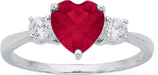 Sterling Silver Red Heart Glass & CZ Trilogy Ring Size O1822148