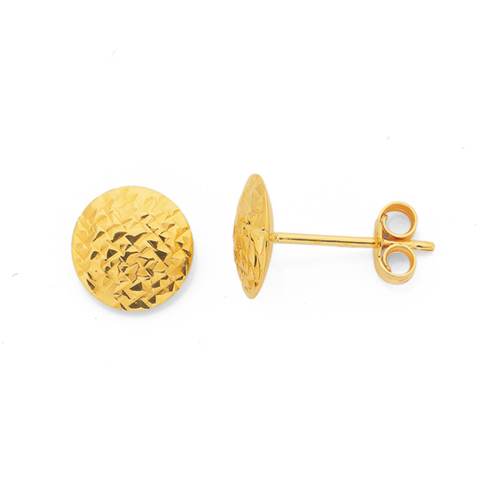 9ct Gold 8mm Diamond-cut Button Stud Earrings 2461166