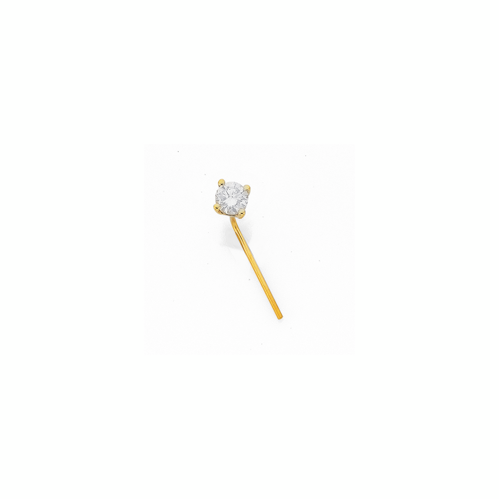 9ct Gold Diamond Claw-set Nose Stud with 7 Points of Diamond - L-shape Tail End, 25 Gauge equivalent to 0.5mm Wire Thickness.