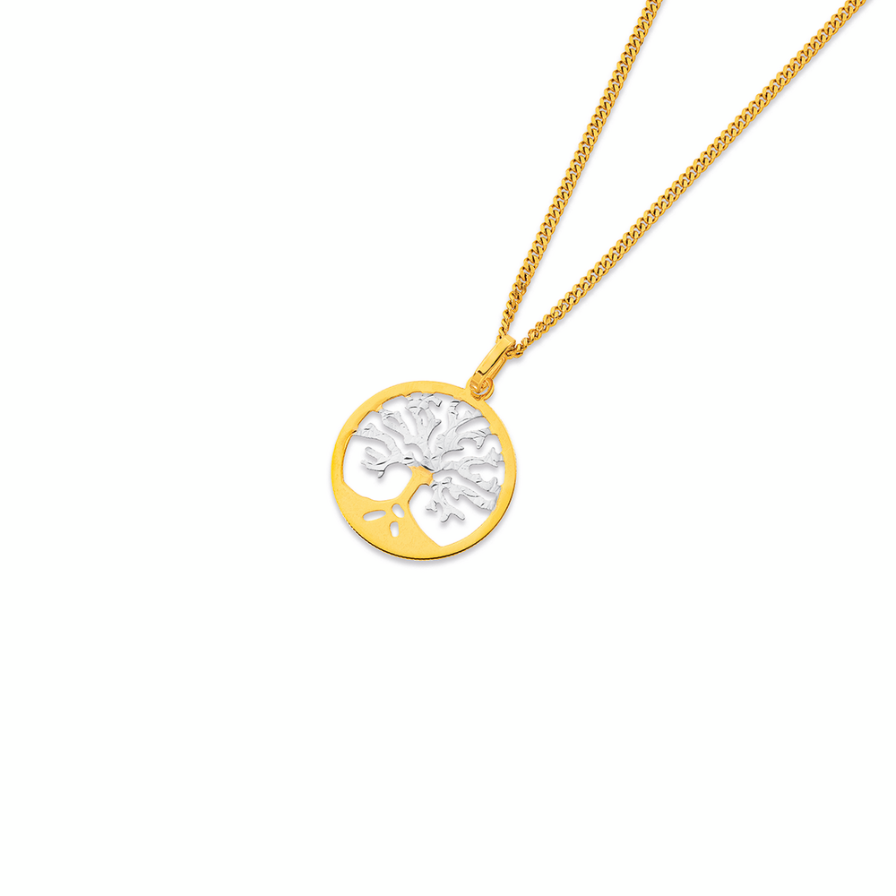9ct Two Tone Tree of Life Circle Pendant