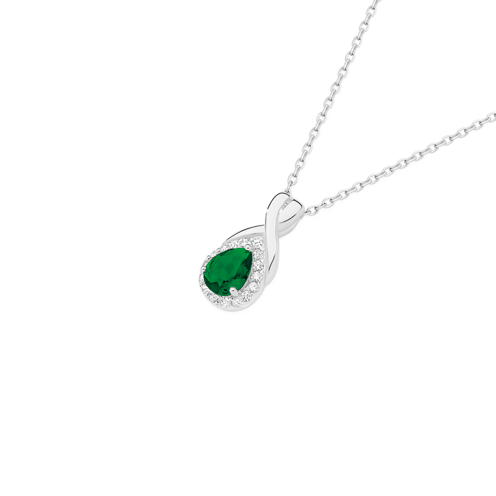 Sterling Silver Green Pear Glass & CZ Twist Pendant 1721440