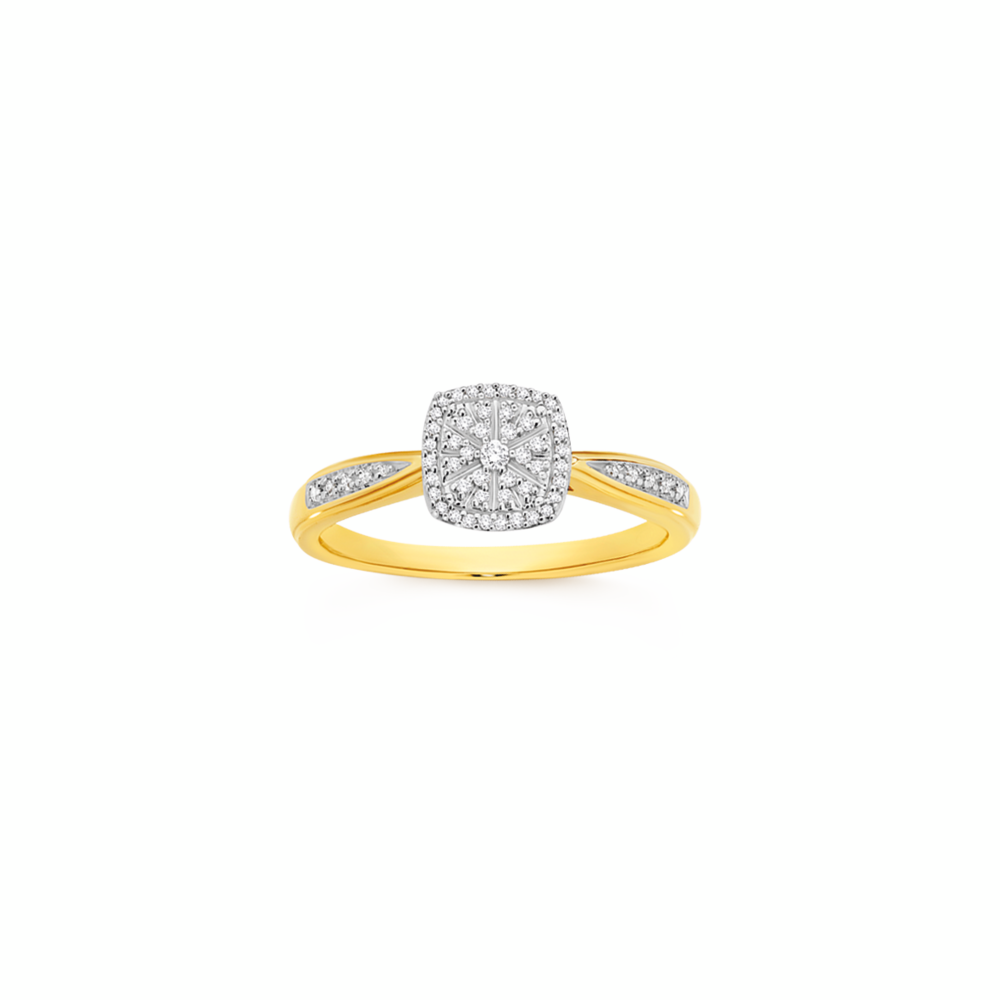 9ct Gold Diamond Cushion Shape Cluster Ring Total Diamond Weight = .10ct