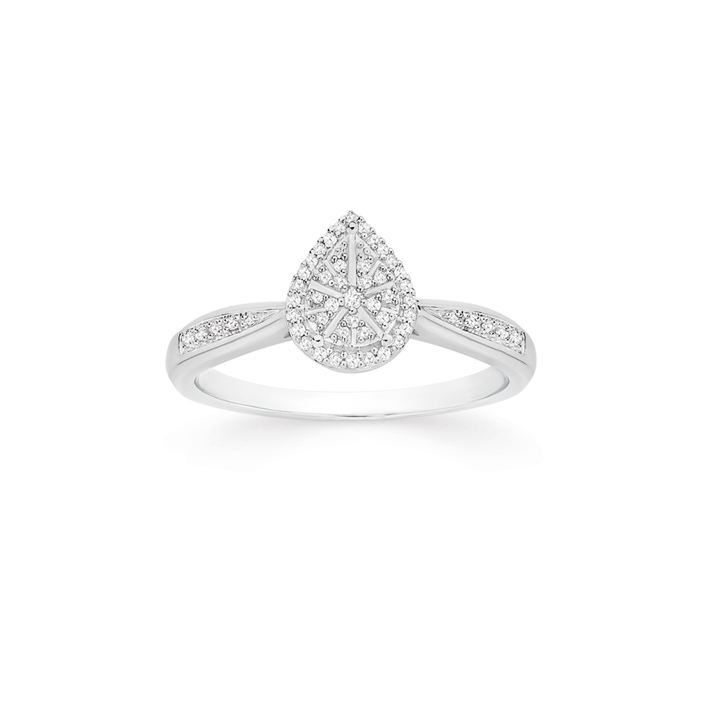 9ct White Gold Diamond Pear Shape Cluster Ring Total Diamond Weight = .10ct
