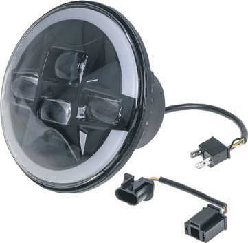 ADR approved LED headlight. High/low beam. Integrated park light. H4 connector. Negative switching compatible. 12 or 24V compatible. 6000K colour temperature. IP67 rated.