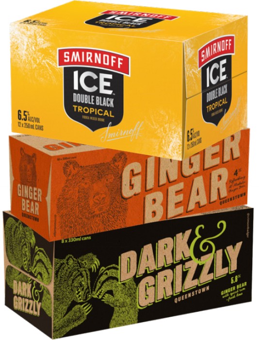 Smirnoff Ice Double Black or Tropical 12 X 250mL Cans, Crimson Badger Ginger Bear 4% 10 X 330mL Cans or